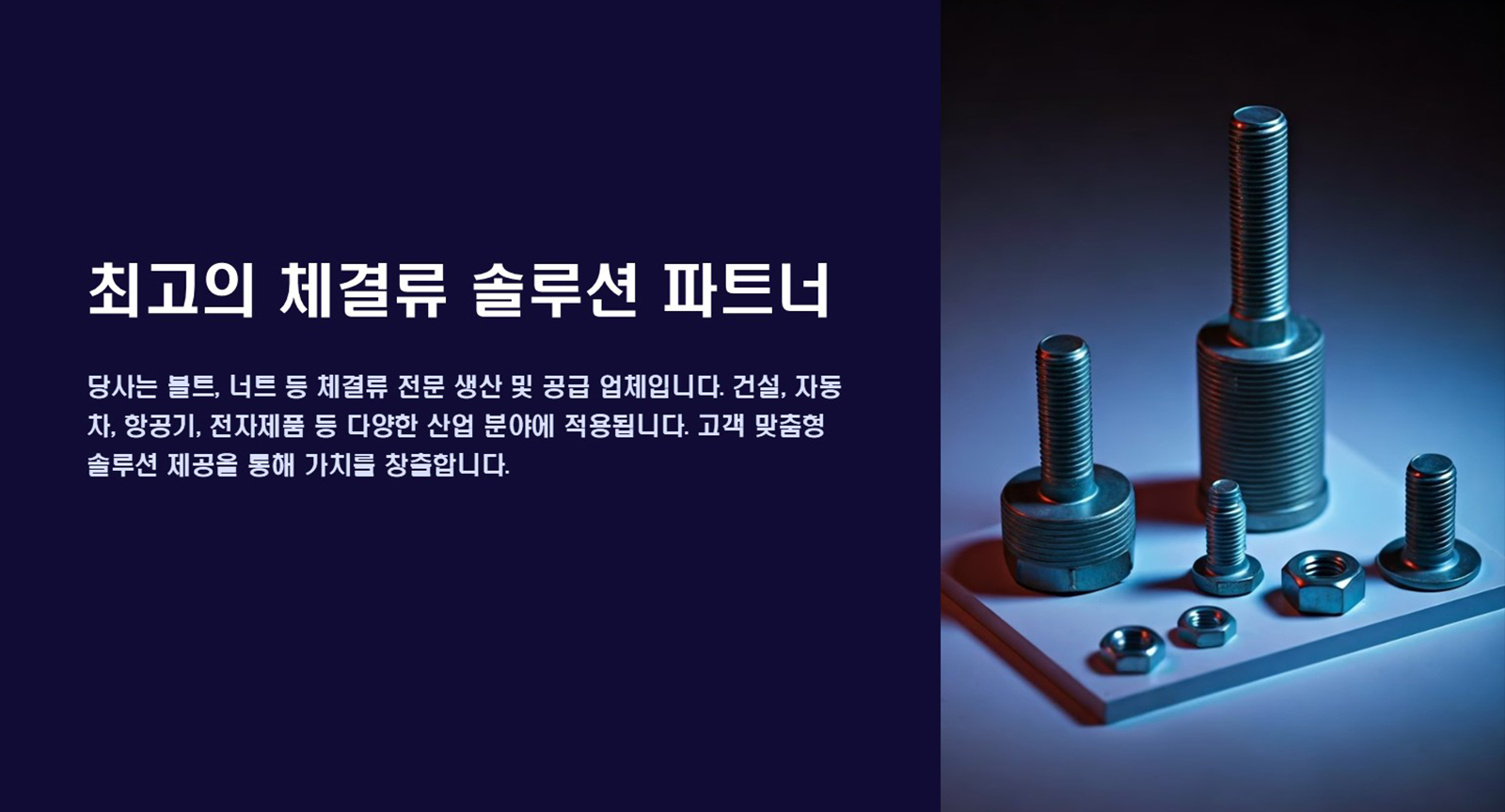 구조물, 기계, 산업 전반에 사용되는 다양한 규격의 볼트 제품