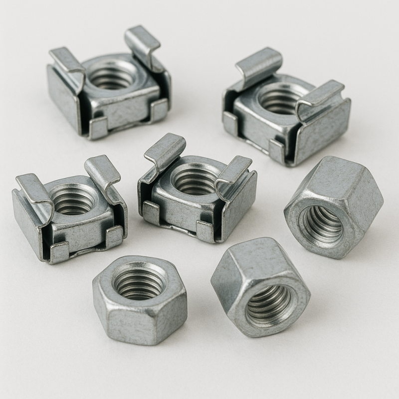 사각 케이지에 삽입되어 고정되는 너트입니다.
