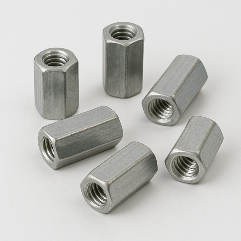 두 개의 볼트나 로드를 연결하는 데 사용되는 너트입니다.