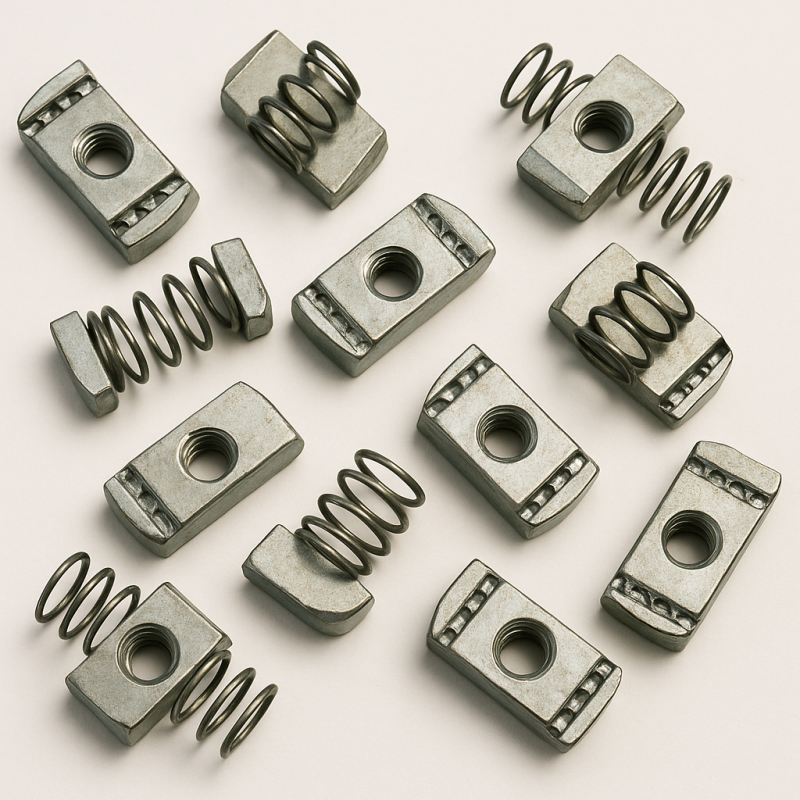 사각 케이지에 삽입되어 고정되는 너트입니다.